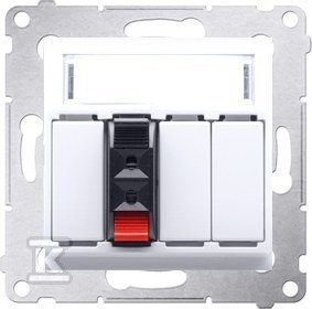 Gniazdo głośnikowe 1-krotne, do podłączenia 1 kolumny głośnikowej, biały Simon54 o numerze katalogowym DGL31.01/11 w kategorii Gniazda głośnikowe, Łączniki i gniazda instalacyjne. Produkt wyprodukowany przez markę KONTAKT-SIMON, seria SIMON 54.